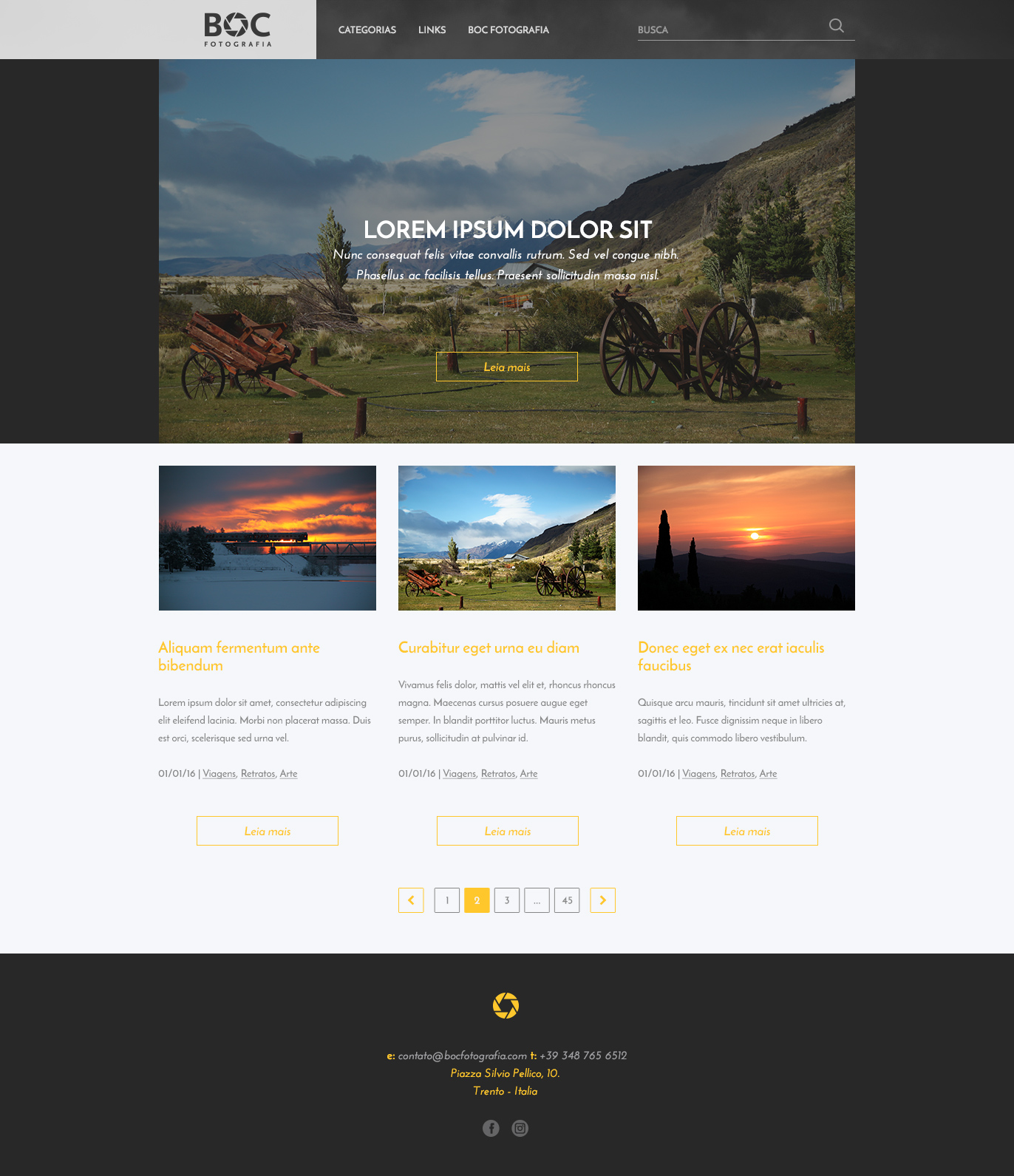 Projeto de site institucional e blog realizado para o cliente BOC Fotografia, presente no Brasil e Itália.